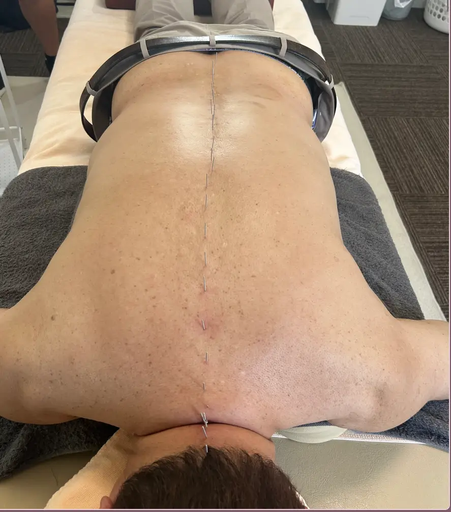 テーマは、背骨のライン(督脈:とくみゃく)への刺鍼です。